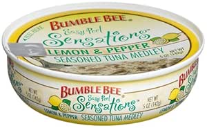 Where do the calories in bumble bee sensations, lemon & pepper seasoned tuna medley, with crackers come from? Bumble bee seasoned tuna pouch: My experience with bumble bee tuna is the worst product labeling under albacore chunk white tuna, it's really cat food???? Lightly marinated, premium tuna, seasoned to perfection with pepper and a delicious touch of lemon.